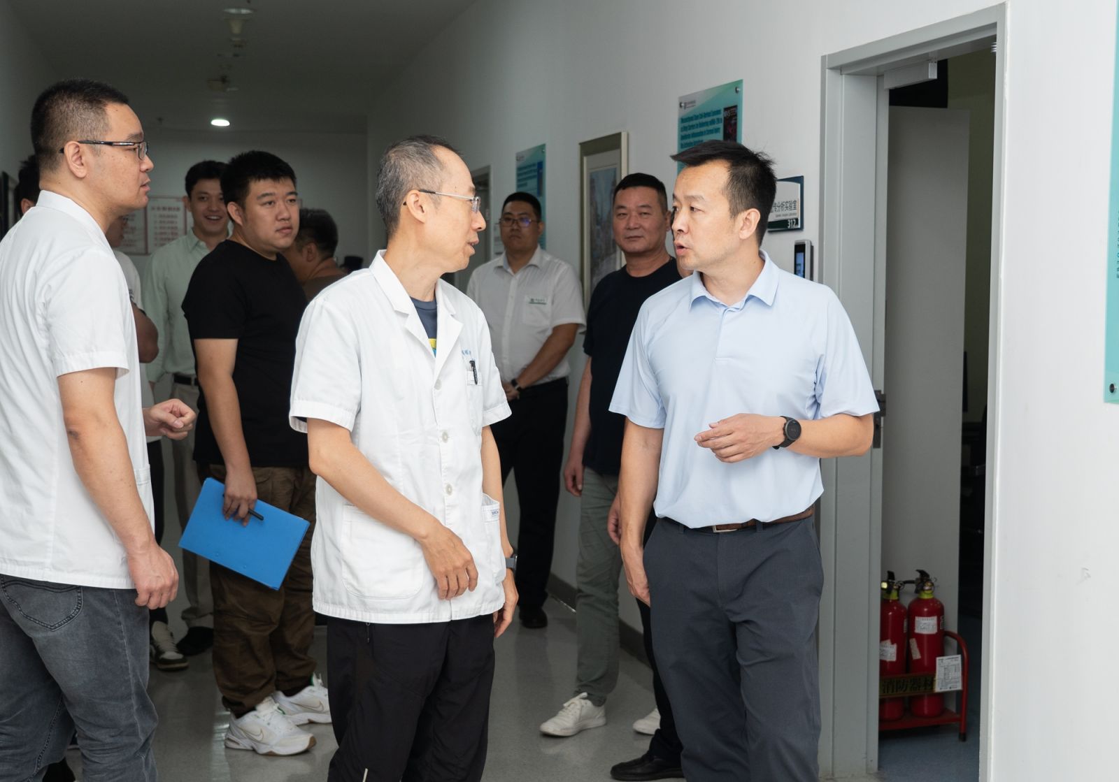 主管院领导带领相关部门组成联合检查组,对全院开展拉网式隐患大排查。针对重点点位、风险点位,检查组重点检查了消防设施(如疏散通道、灭火器)、电力系统(配电房、用电设备)、危化品暂存点、安检重点区域 ,以及消防安全重点部位(实验室、食堂等)。检查中,对发现的隐患责令相关责任人立行立改,确保整改到位,杜绝盲区和死角。