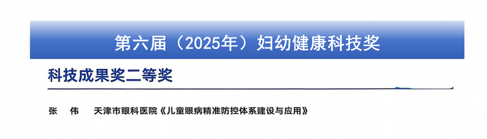 天津市眼科医院张伟教授团队荣获2025年第六届全国妇幼健康科技奖科技成果奖二等奖